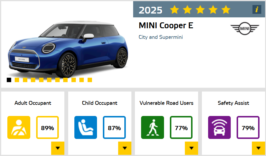 Noul Mini electric dovedește că mașinile mici pot oferi siguranță sporită. În ciuda dimensiunilor sale compacte, a obținut scoruri mari la testele de impact structural, ceea ce îl face cea mai sigură alegere din clasa supermini dintre modelele evaluate de Euro NCAP în 2025.