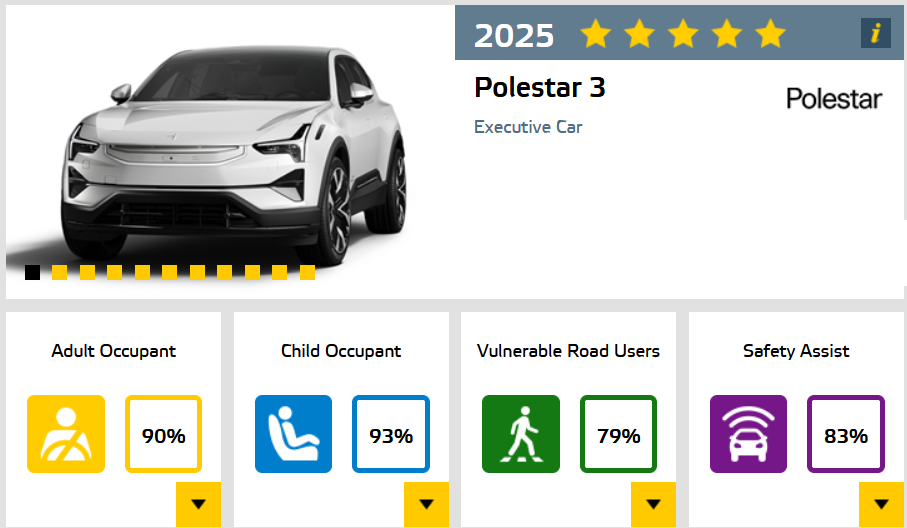 Continuând reputația mărcii pentru inovația în materie de siguranță, Polestar 3 și-a depășit rivalii din clasa mașinilor executive. Integritatea sa structurală, ratingul impresionant de protecție a ocupanților copiilor și suita de tehnologii de asistență a șoferului de ultimă generație i-au asigurat locul de cel mai sigur vehicul executive al anului 2025.