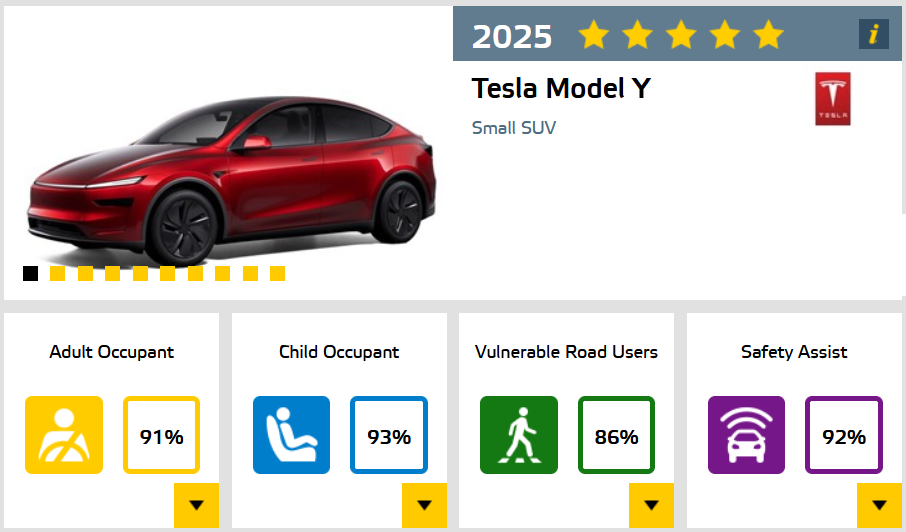 Consolidând victoria Tesla în două categorii din acest an, cel mai bine vândut model al companiei s-a dovedit a fi standardul de aur pentru SUV-urile mici, excelând în special la testele de protecție a ocupanților copiilor și Safety Assist.