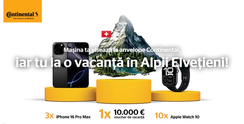 În această perioadă, Continental derulează campania „ Mașina ta visează la anvelope Continental, iar tu la o vacanță în Alpii Elvețieni!”, dedicată celor care vor să înțeleagă ce se ascunde în spatele siglei negre-aurii și de ce alegerea lor contează.